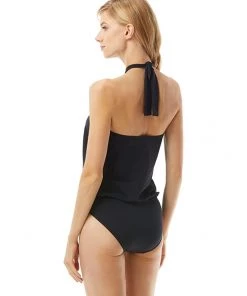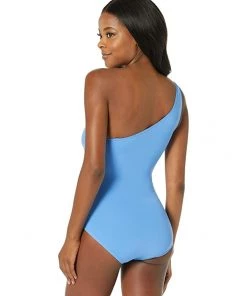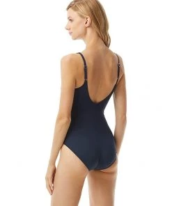 MICHAEL Michael Kors Swimwear Iconic Solids Sash Logo Trim V-Neck One-Piece with Removable Soft Cups
