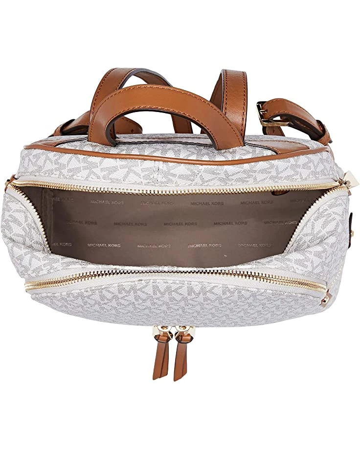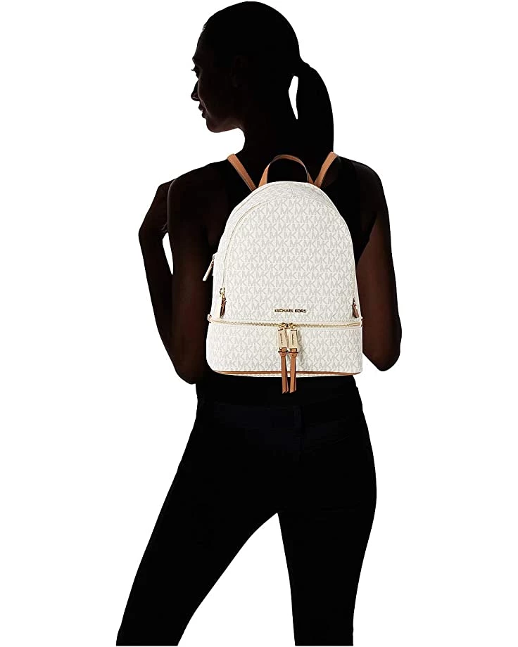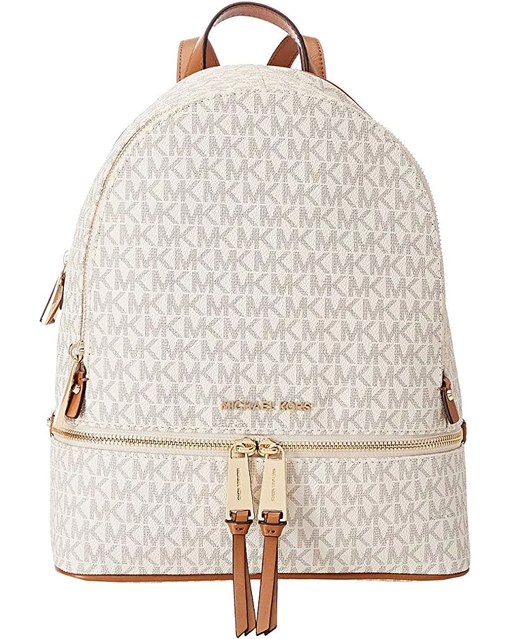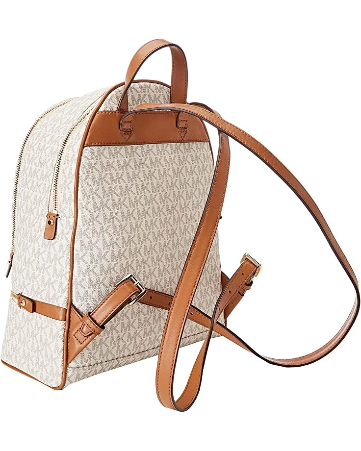 - Make the MICHAEL Michael Kors® Rhea Zip Medium Backpack one of your go-to choices featuring a monogrammed leather exterior, top flat handle, dual adjustable shoulder straps, and zip-around closure.