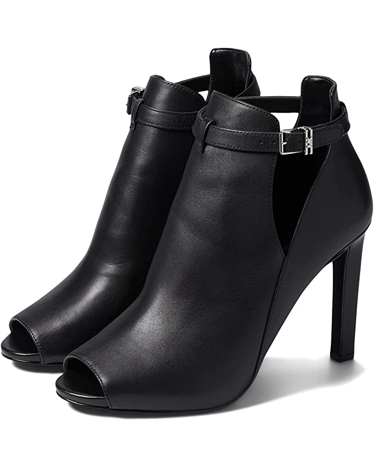 - Keep your look polished and on point with the MICHAEL Michael Korsยฎ Lawson Open Toe. This sleek bootie is crafted with a leather or suede upper, and is designed with a wrapped heel, buckle hardware, and a sturdy stiletto heel.