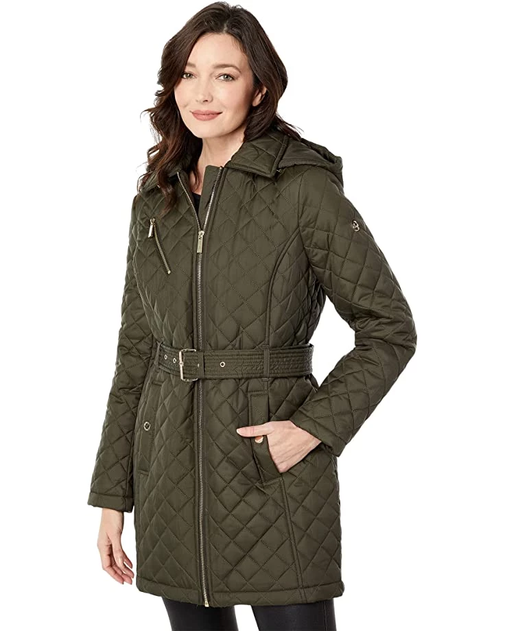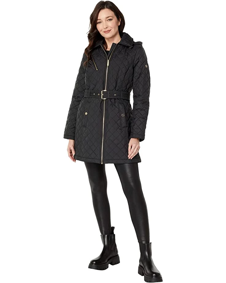 - Stay stylish in warm comfort with the MICHAEL Michael Korsยฎ Zip Front Belted Diamond Quilt Jacket M424454QZ.
