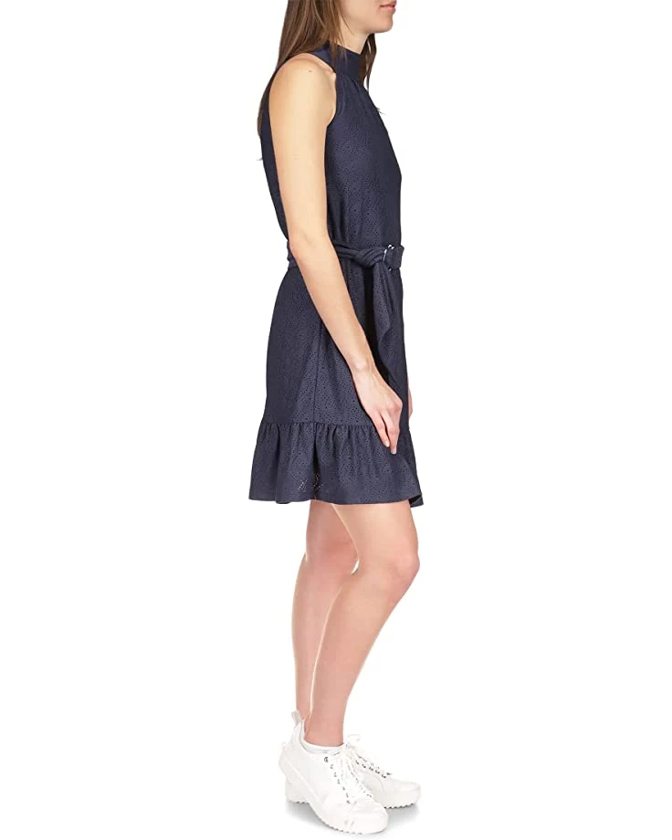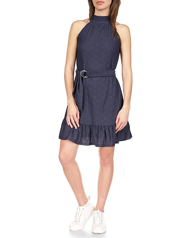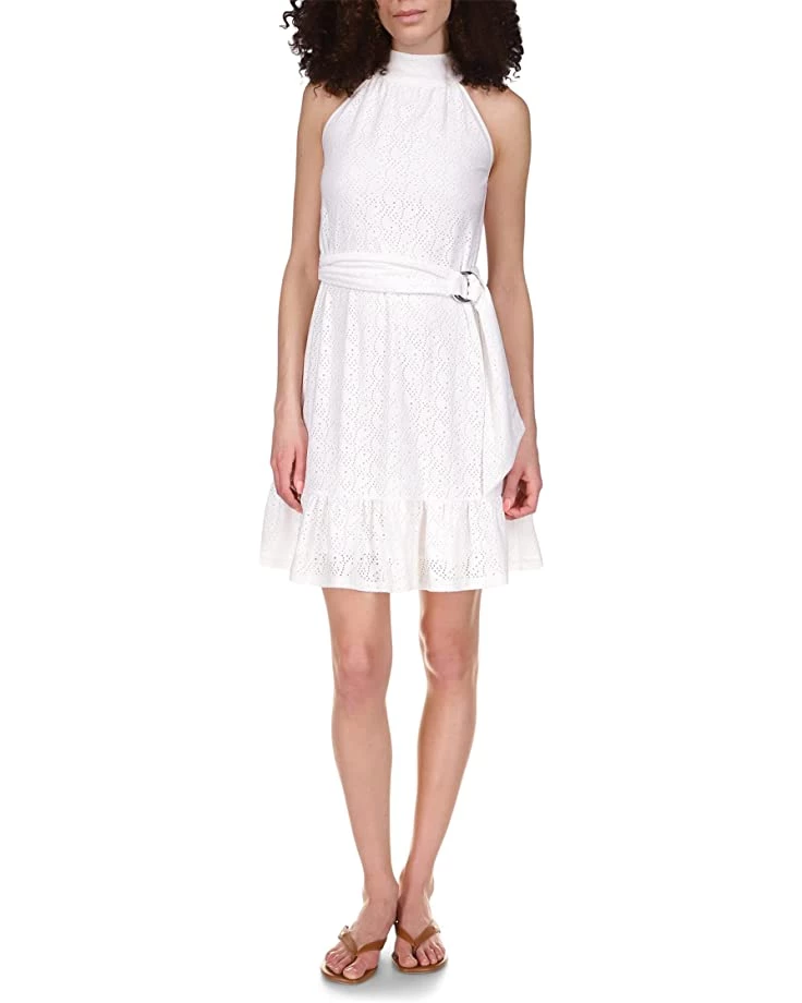- Regardless of the occasion, you will always manage to slay when the MICHAEL Michael Kors® Eyelet Mock Neck Belted Mini Dress has got your back.