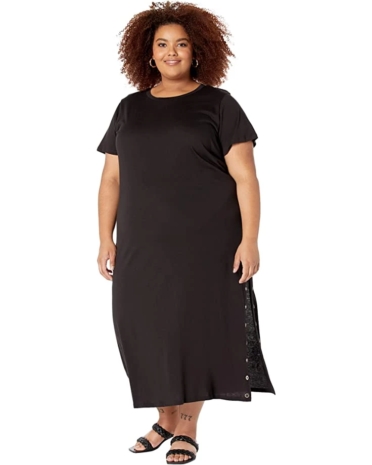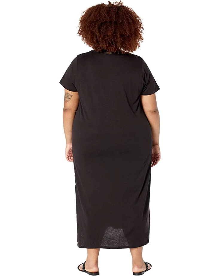 - Look bold and beautiful wearing the solid color MICHAEL Michael Kors® Plus Size Midi T-Shirt Grommet Dress.