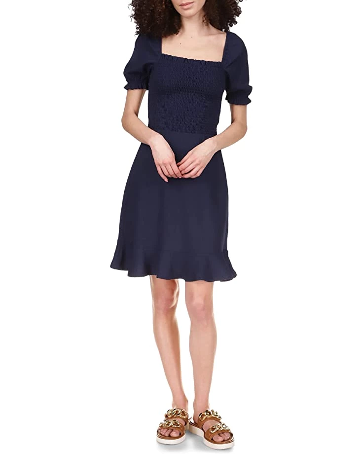 - Go minimal and classic wearing the MICHAEL Michael Kors® Smocked Mini Short Sleeve Dress featuring a simple yet stylish construction.