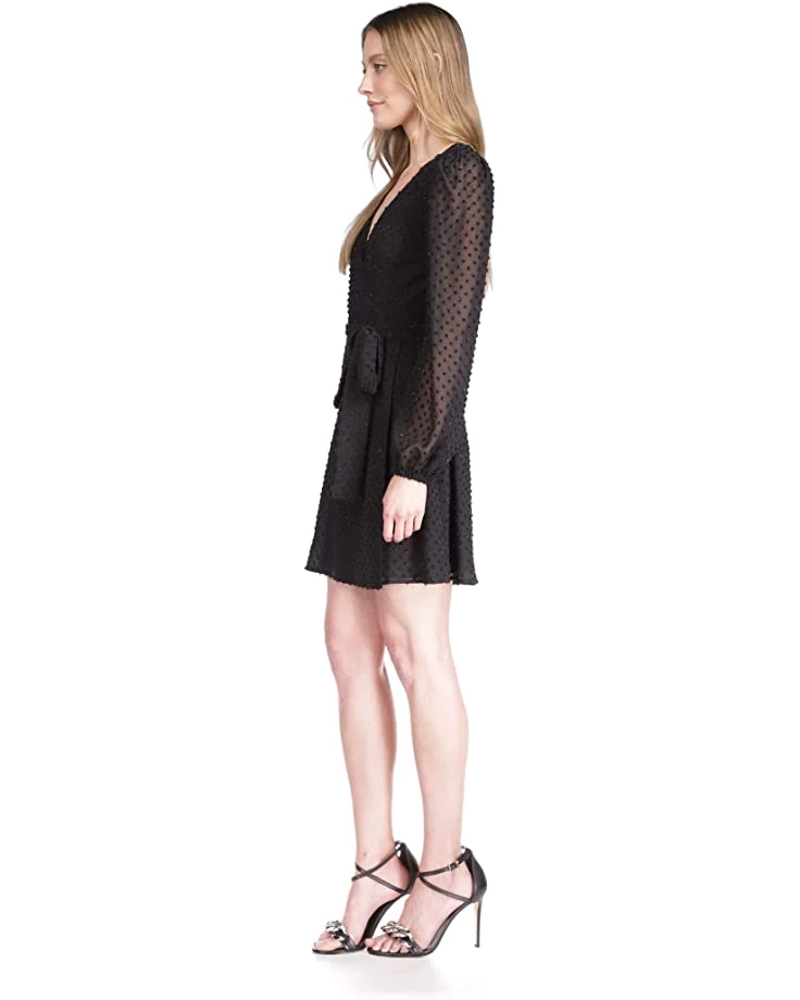 - MICHAEL Michael Kors® Swiss Dot Wrap Dress comes with a tie-detailing on the front and a sleek A-line skirt that complements the soft sheer silhouette.