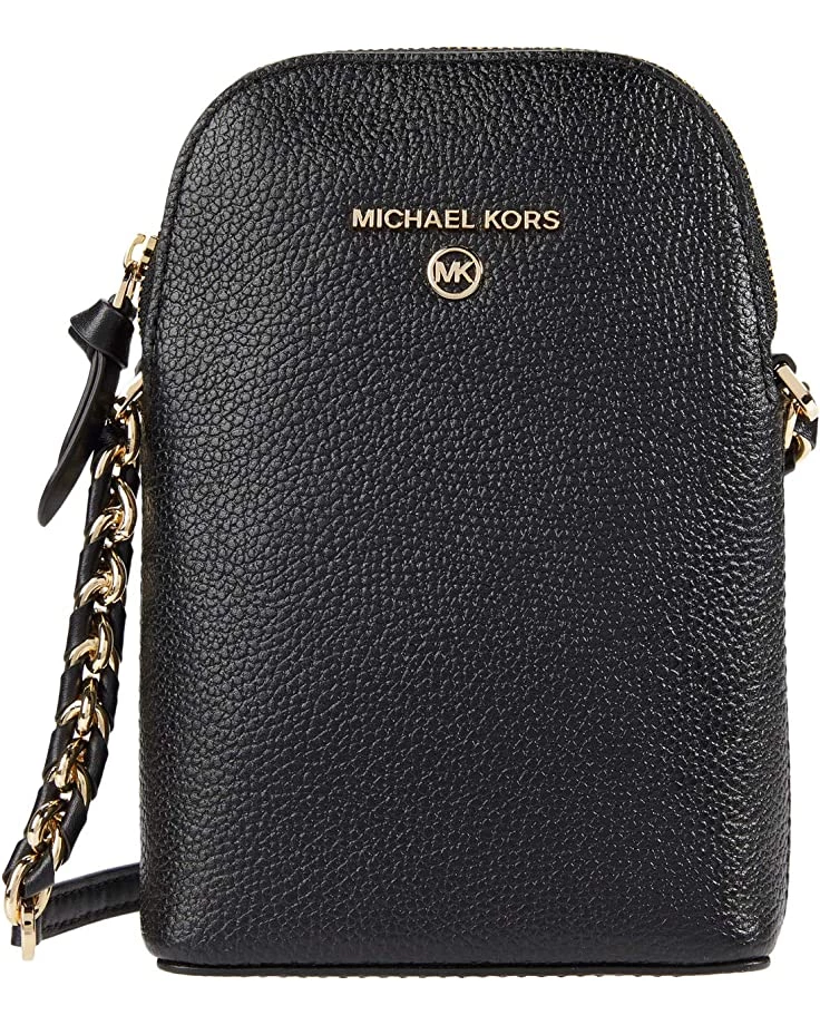 - The MICHAEL Michael Korsยฎ Jet Set Charm Small North/South Chain Phone Crossbody is crafted in a pebbled leather exterior, zip-around closure, and rear exterior slip pocket.