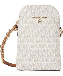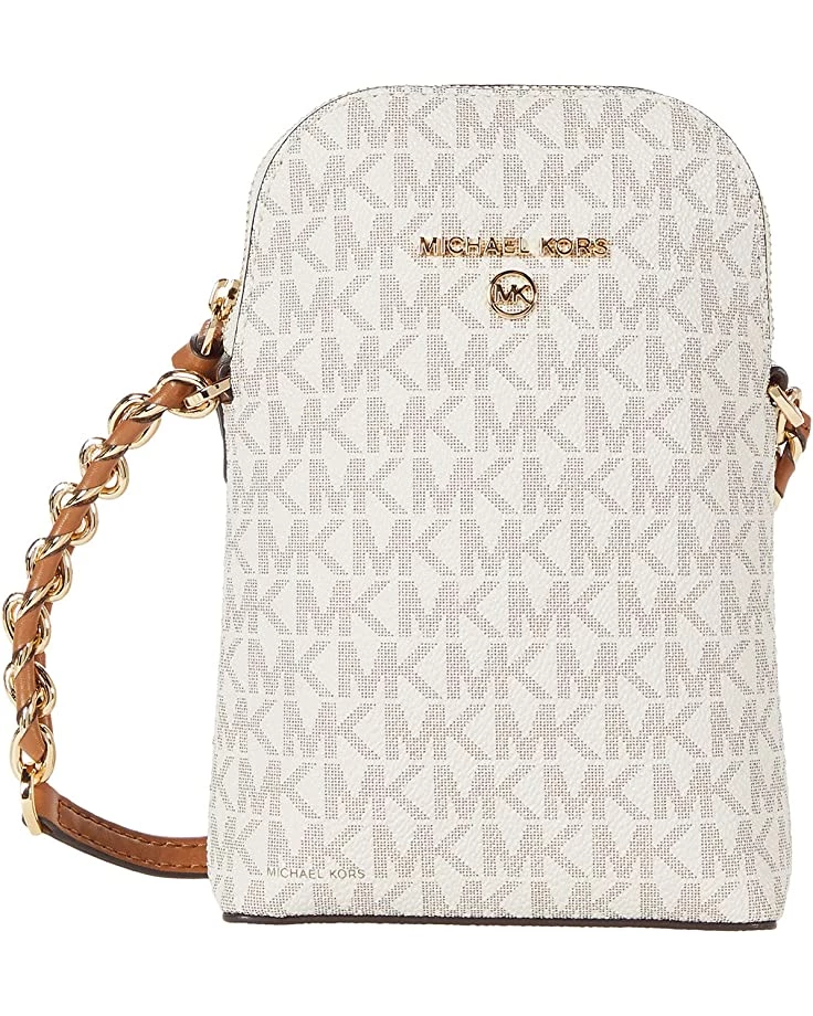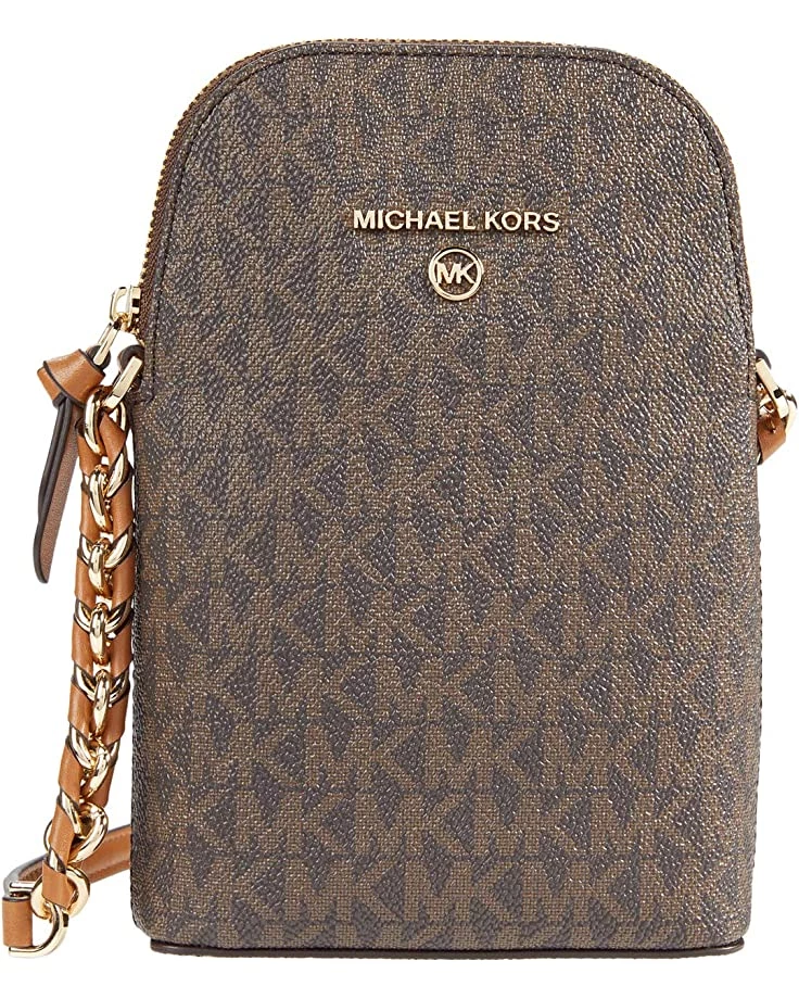 - The MICHAEL Michael Korsยฎ Jet Set Charm Small North/South Chain Phone Crossbody is crafted in a pebbled leather exterior, zip-around closure, and rear exterior slip pocket.