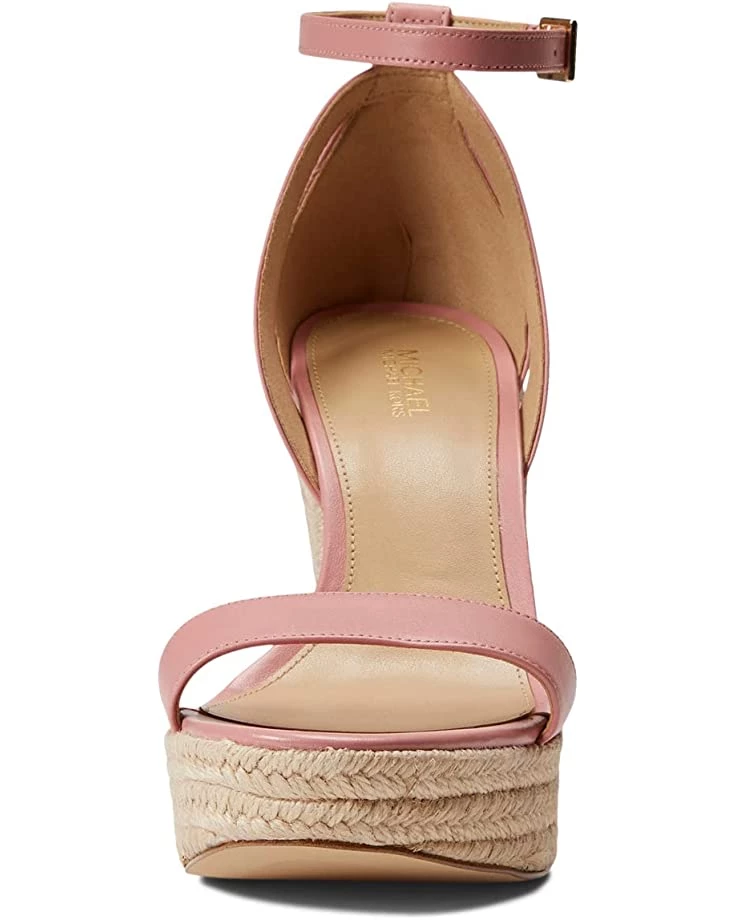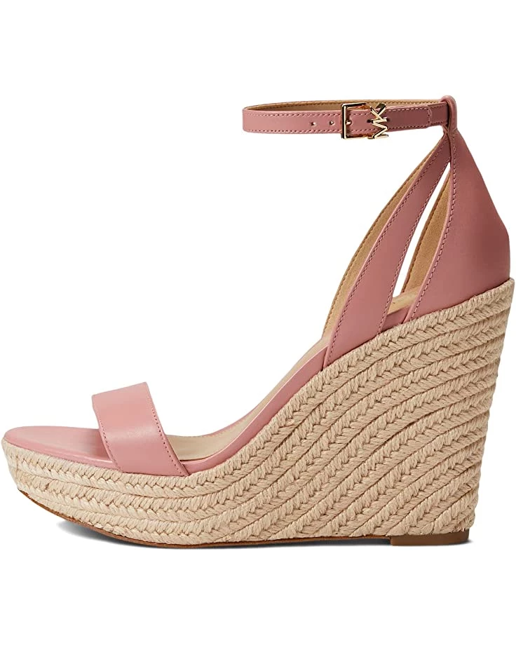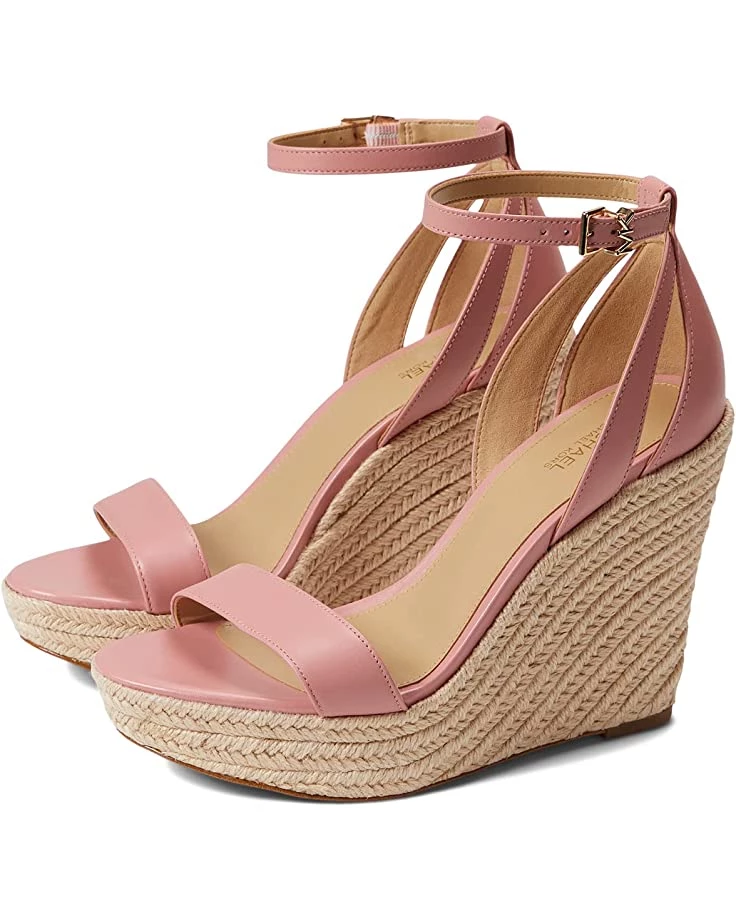 - Take on the weekend in the MICHEAL Micheal Kors® Kimberly Wedge featuring a classic open-toe, jute heel with roller buckle hardware at ankle. Available in two color options.