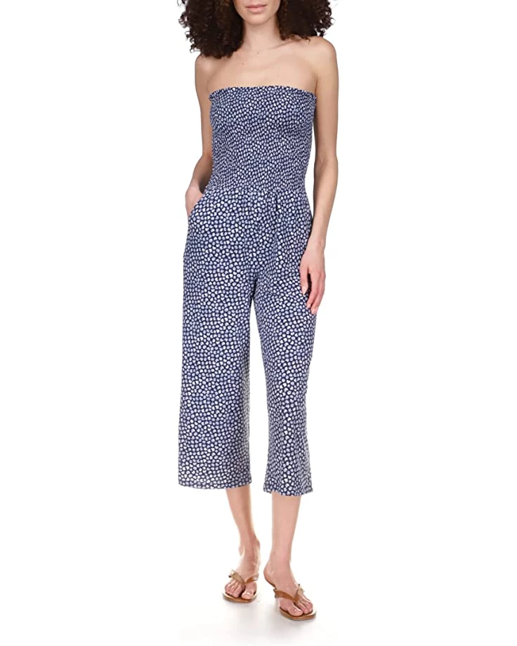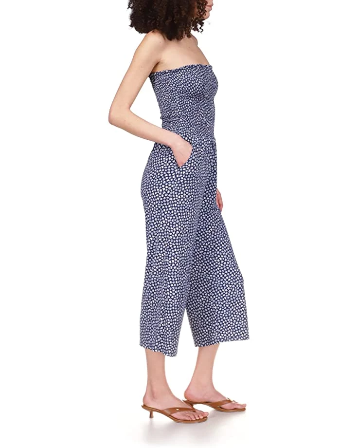 - Go basic and trendy wearing the MICHAEL Michael Kors® Smocked Strapless Jumpsuit featuring an allover printed design.