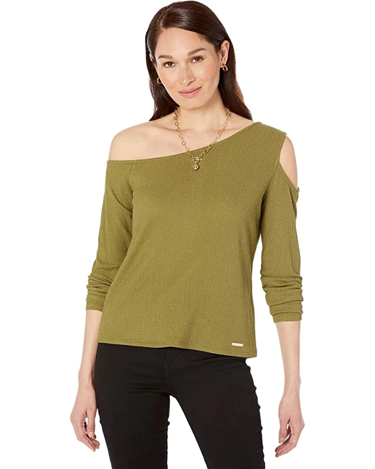 - Make a style statement wearing MICHAEL Michael Kors® Asymmetrical Cold-Shoulder Top.