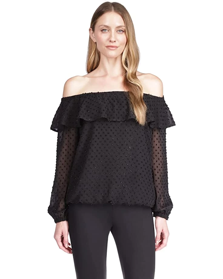 - Stay stylish in comfort with the MICHAEL Michael Kors® Clip Chiffon Off Shoulder Top.