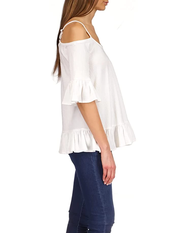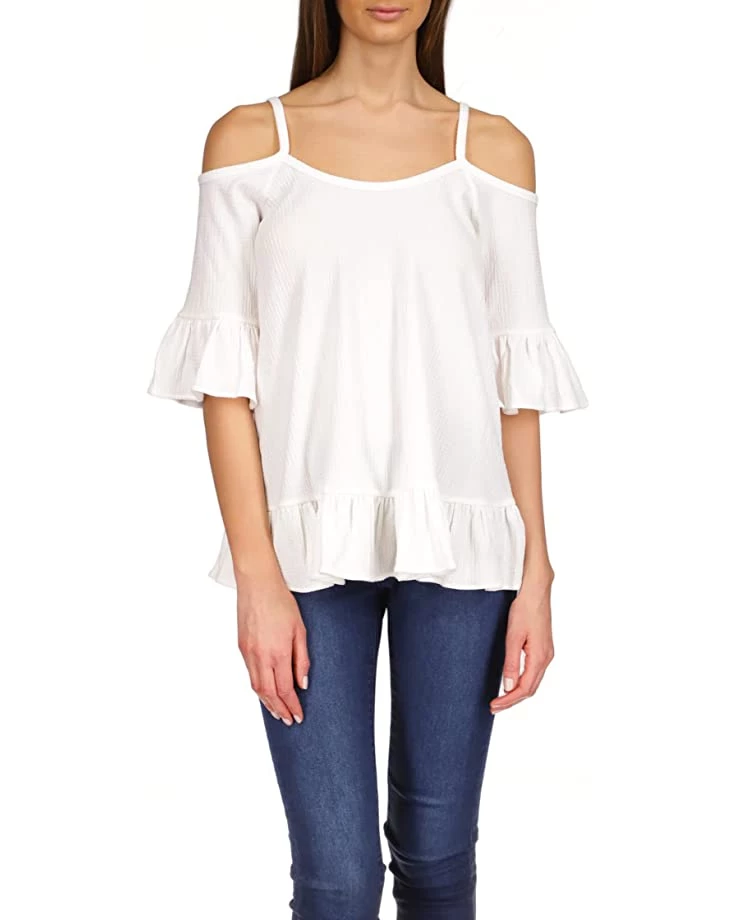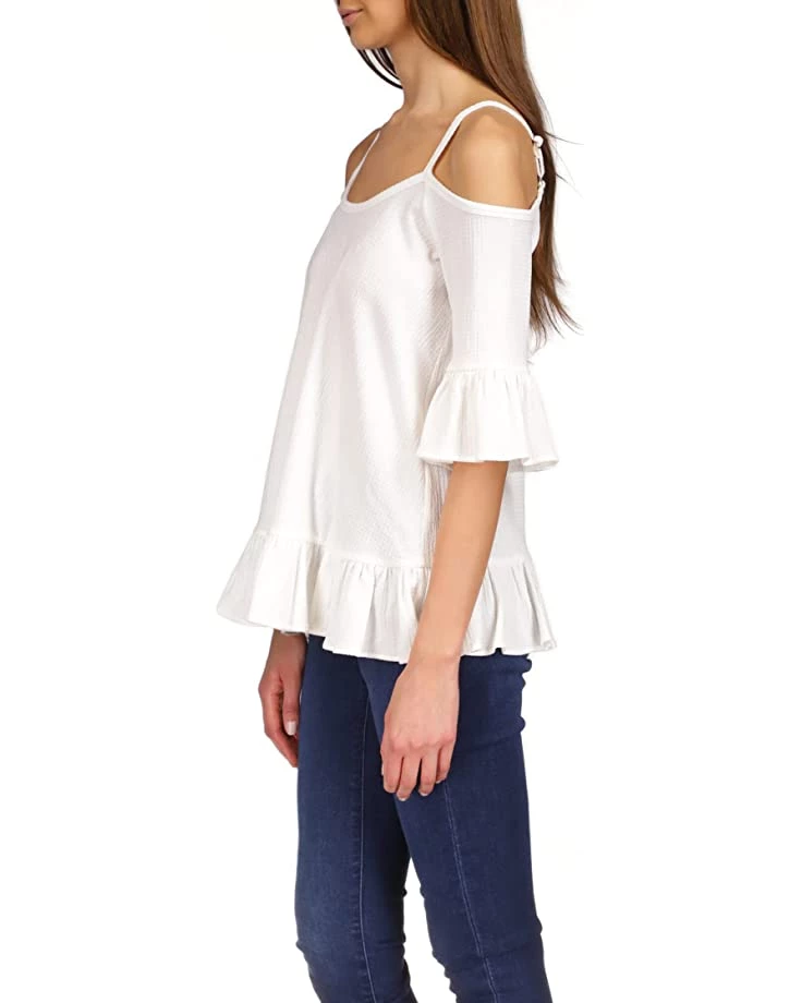 - Complement your chic style in the MICHAEL Michael Kors® Cold-Shoulder Ruffle Top.