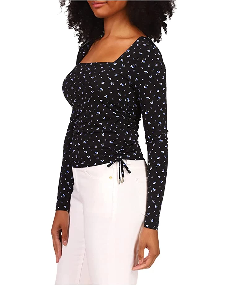 - The MICHAEL Michael Kors® Floral Square Neck Ruched Long Sleeve Top is lighter-than-air and makes outfitting a breeze.