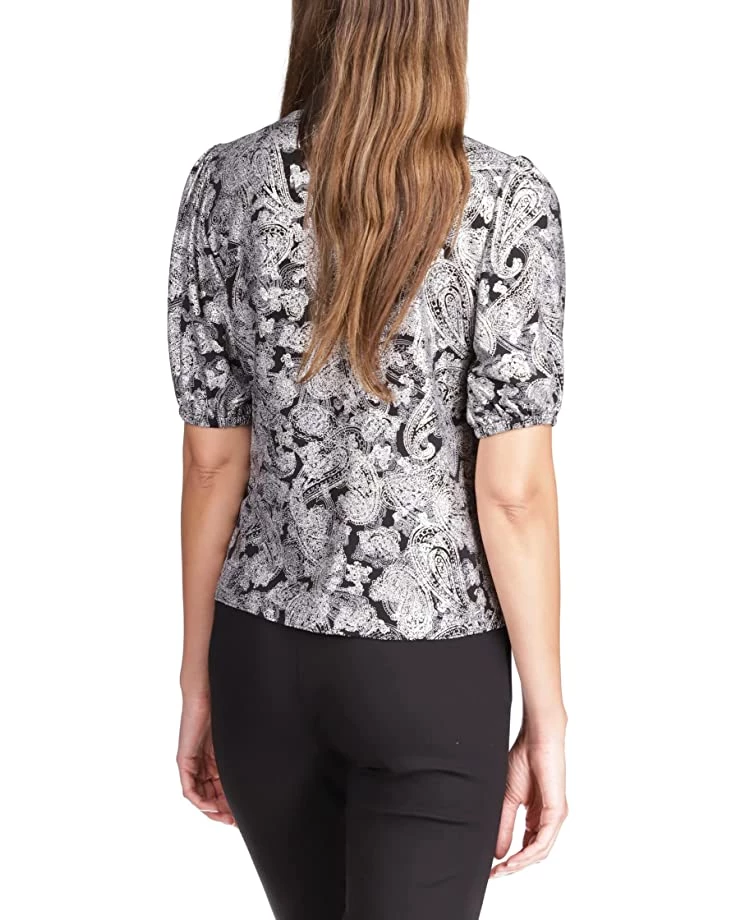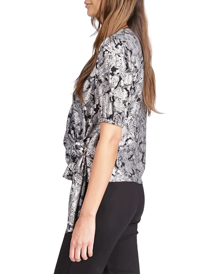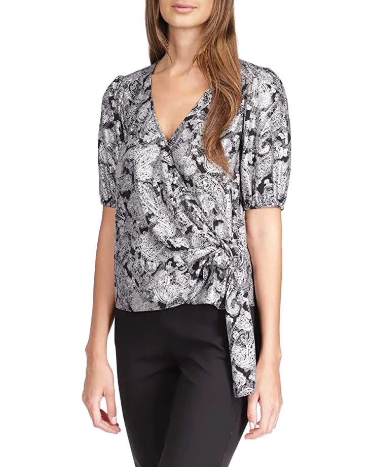 - Stay stylish in comfort with the MICHAEL Michael Kors® Foil Paisley Wrap Top.