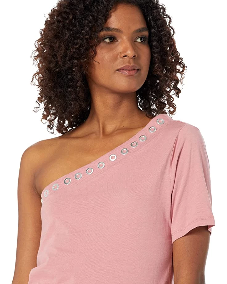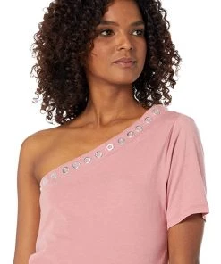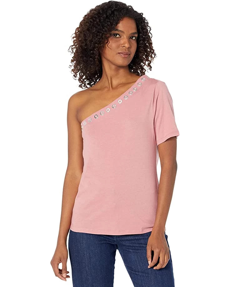 - The one-shoulder styling and grommet details gives a chic vibe to the MICHAEL Michael Kors® Grommet One-Shoulder Top.