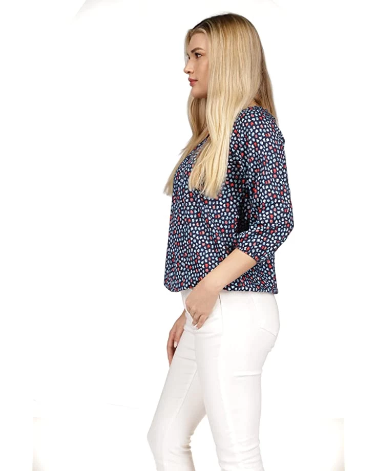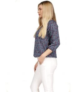 - Three-quarter sleeves with elastic cuffs.