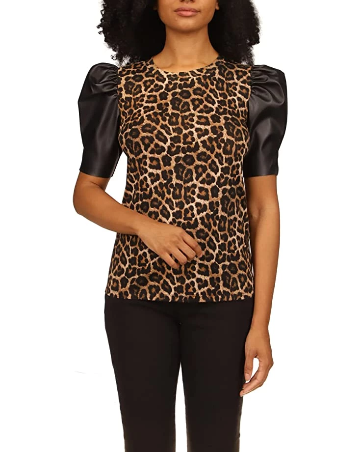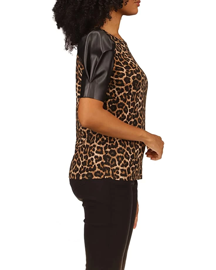 - Make a statement by donning the beautiful MICHAEL Michael Kors® Nubian Leather Sleeve T-shirt.
