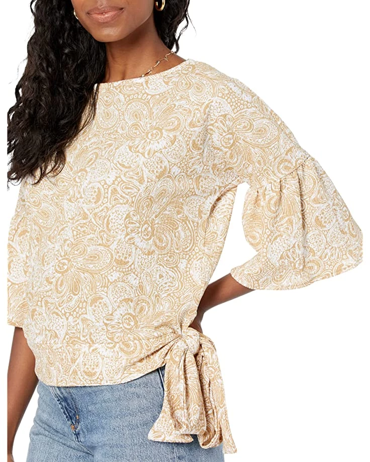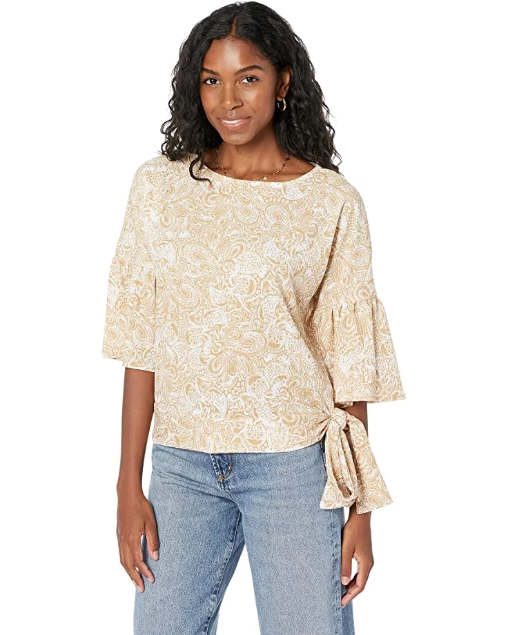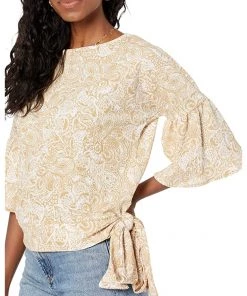 - MICHAEL Michael Kors® Petite Batik Paisley Flounce Sleeve T-Shirt comes with an allover printed design.