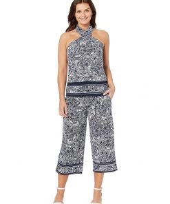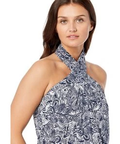 - An allover printed design adorns the look of the MICHAEL Michael Kors® Petite Border Twist Halter Neck Tank Top.