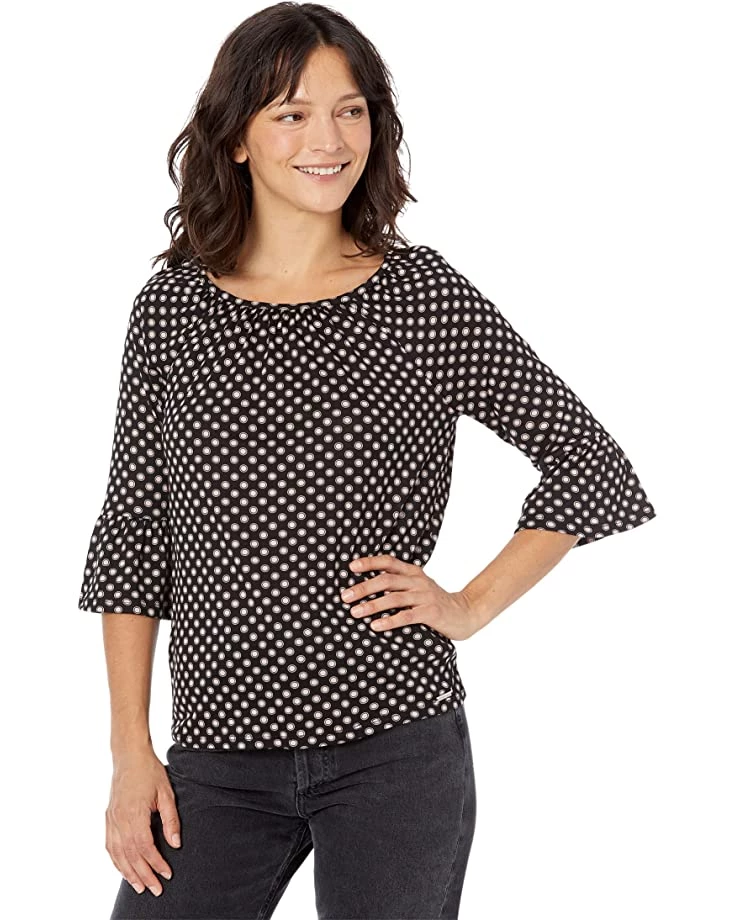 - Adorn an appealing look wearing the sleek MICHAEL Michael Kors® Petite Dot Flare Sleeve Top.