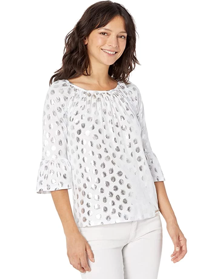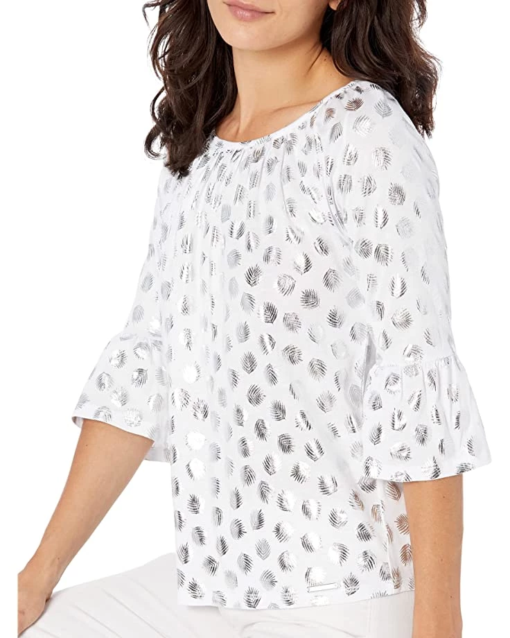 - The MICHAEL Michael Kors® Petite Foilpalm Flare Sleeve Top is the perfect casual pick for summers.