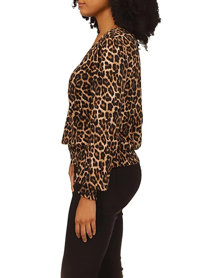 - Turn heads wearing the MICHAEL Michael Kors® Petite Nubian Long Sleeve Smocked Top, featuring the animal print.