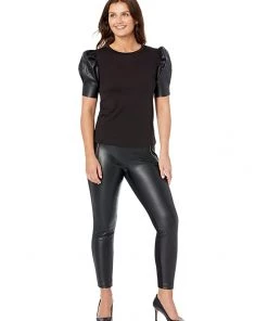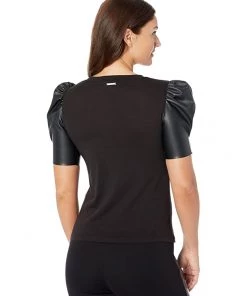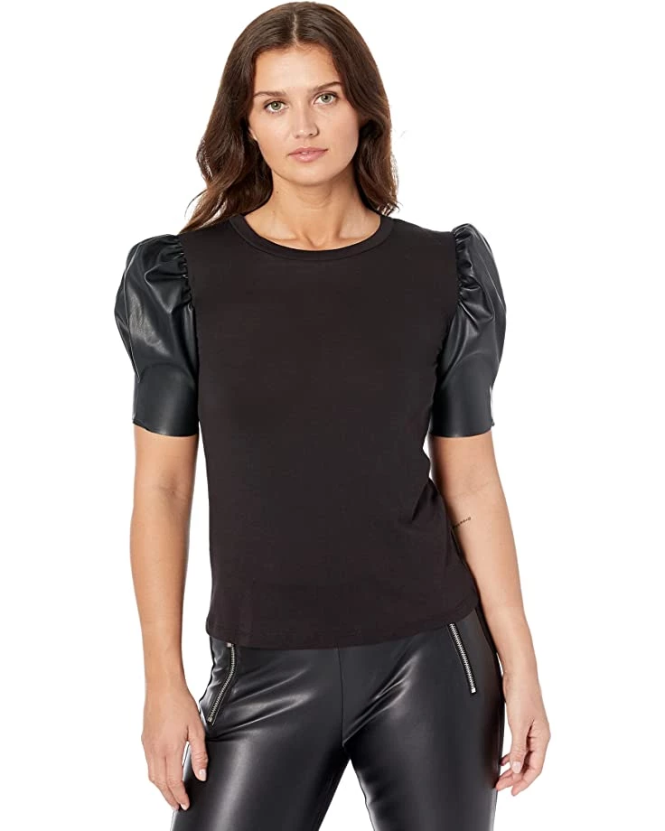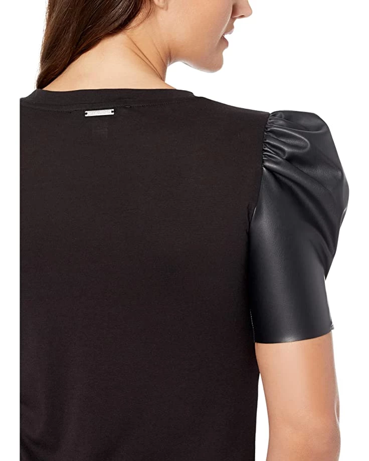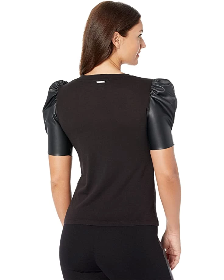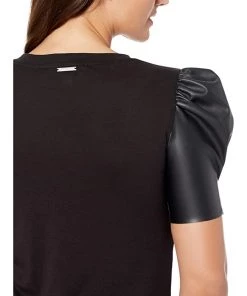 - Break the shackles and make a bold statement wearing MICHAEL Michael Korsยฎ Petite T-Shirt w/ Leather Sleeve.