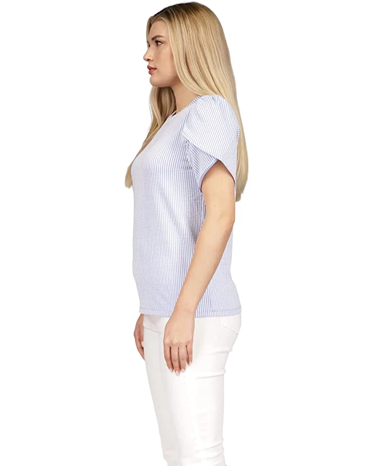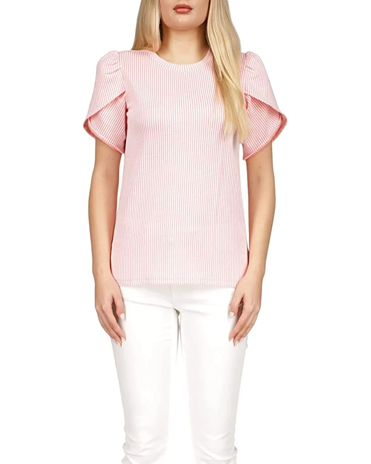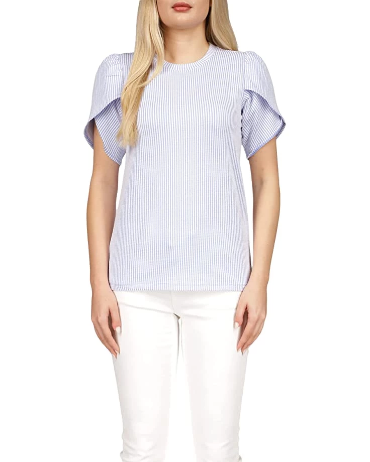 - Add a touch of elegance to your style by wearing the MICHAEL Michael Kors® Pinstripe Jacquard Petal Top.