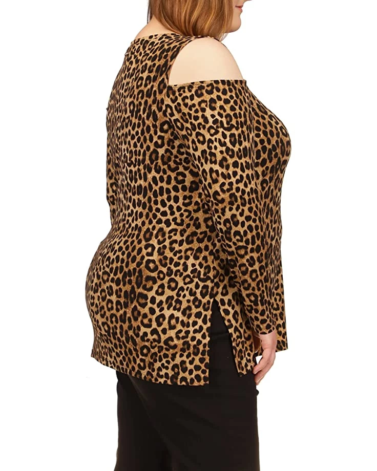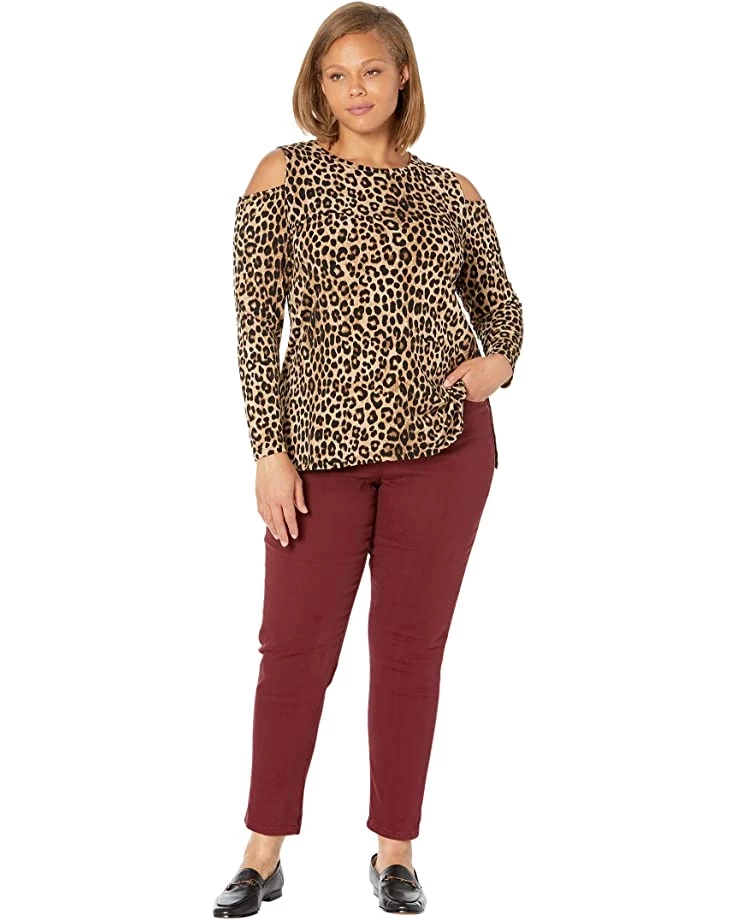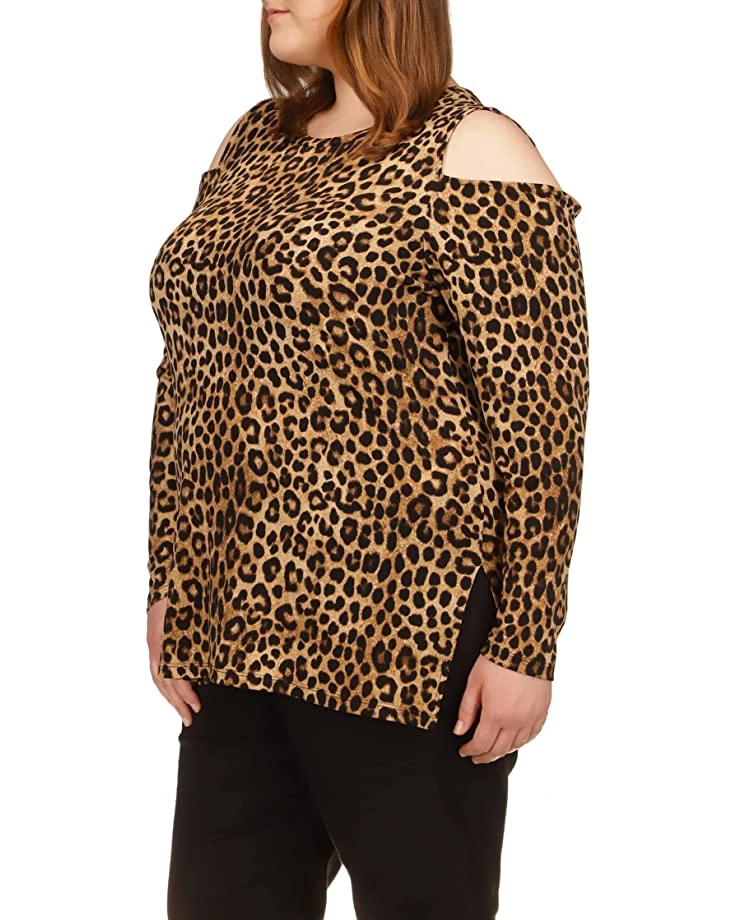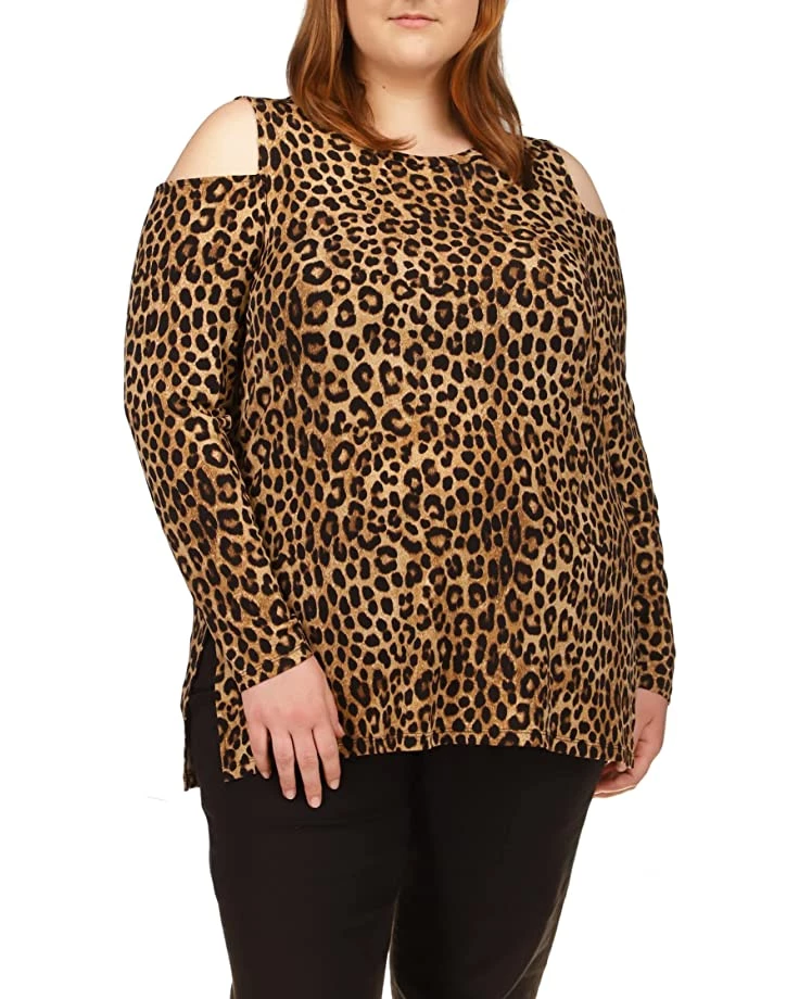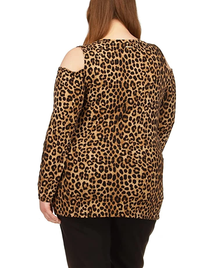 - MICHAEL Michael Kors® Plus Size Cheetah Long Sleeve Cold-Shoulder top is a casual style with a comfy silhouette.
