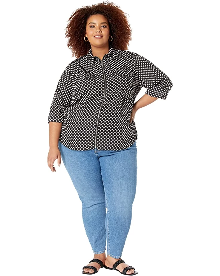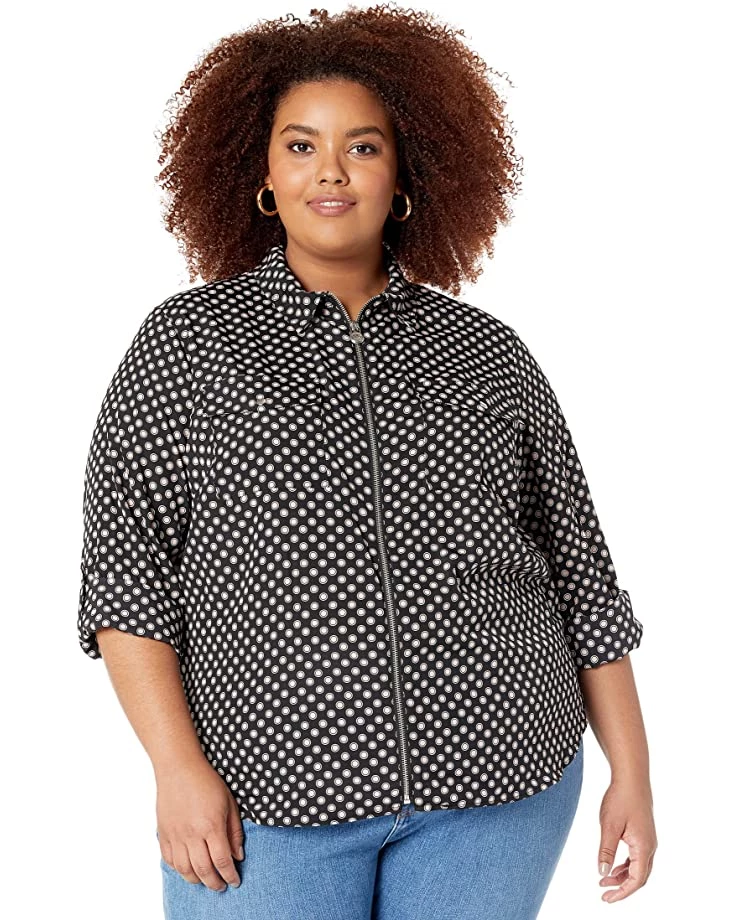 - MICHAEL Michael Kors® Plus Size Dot Lock Zip Shirt is a classy addition to the closet; this looks magnificent when paired with denims or fitted leggings.