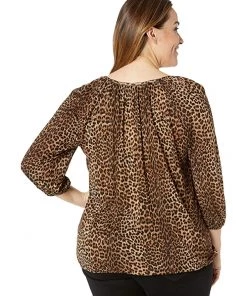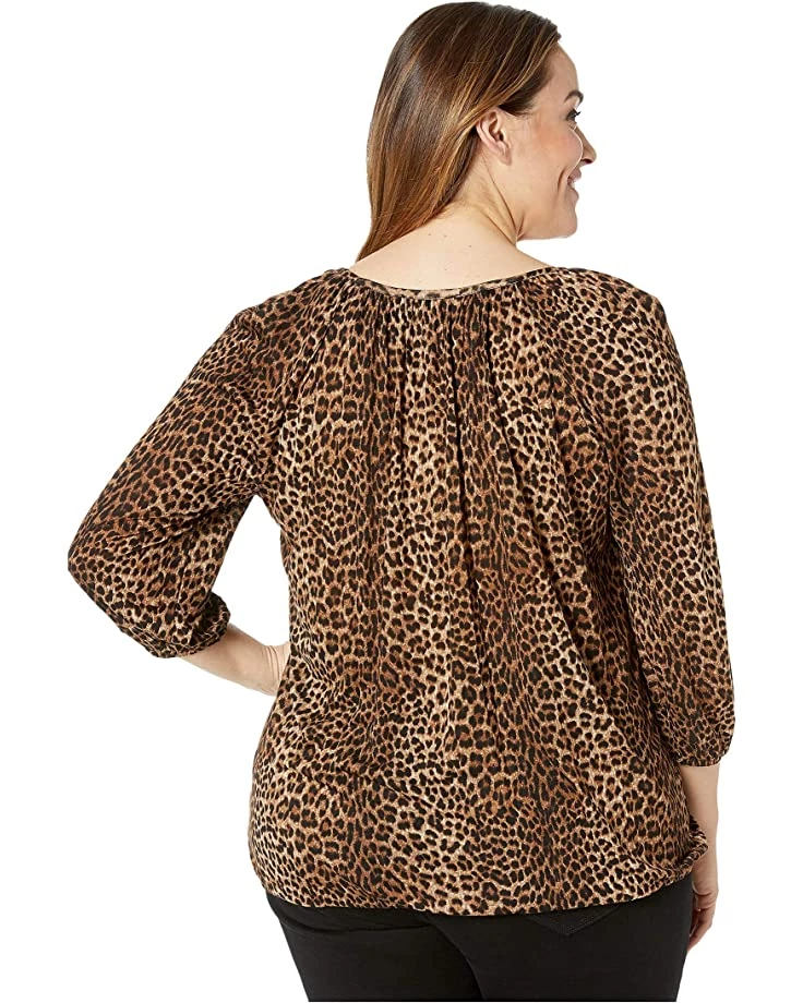 - Brighten up your look with this MICHAEL Michael Kors® Plus Size Leopard Peasant Top.