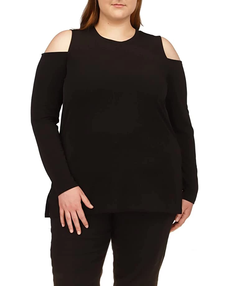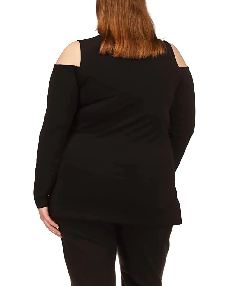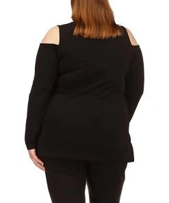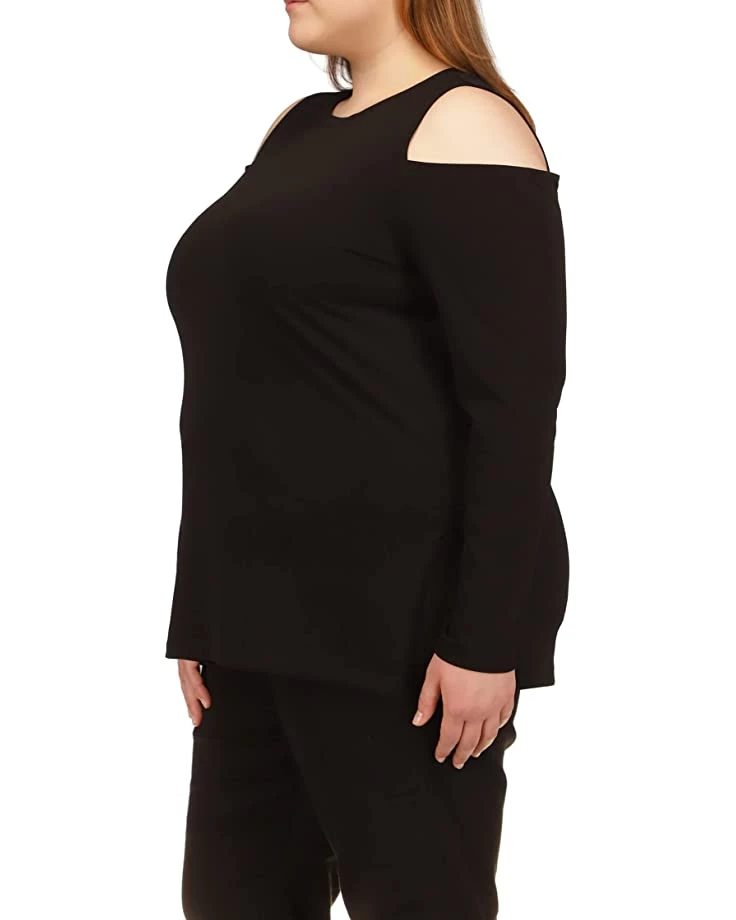 - An elegant cut-out detailing accentuates the shoulders in the MICHAEL Michael Kors® Plus Size Long Sleeve Cold-Shoulder Top.