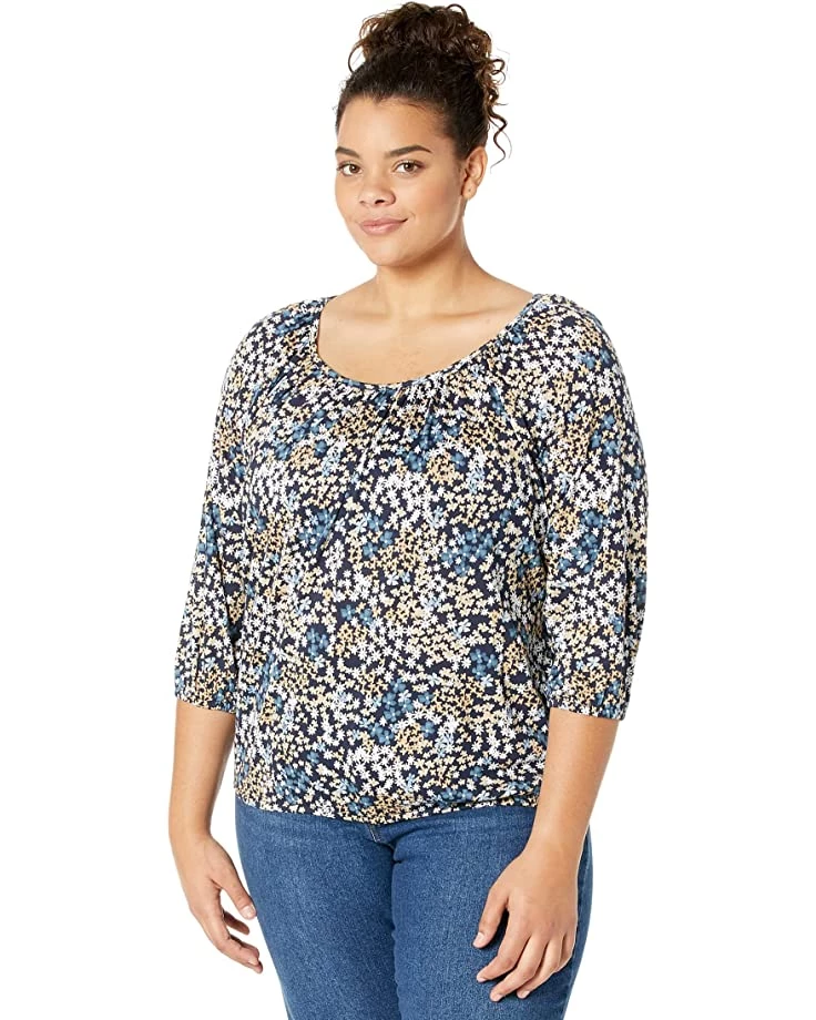 - Elevate your wardrobe with vibrancy wearing the MICHAEL Michael Kors® Plus Size Mod Garden Peasant Top.