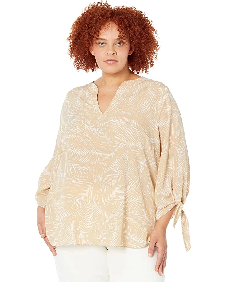 - Head out on your casual days wearing the graceful MICHAEL Michael Kors® Plus Size Palm Tie Top.