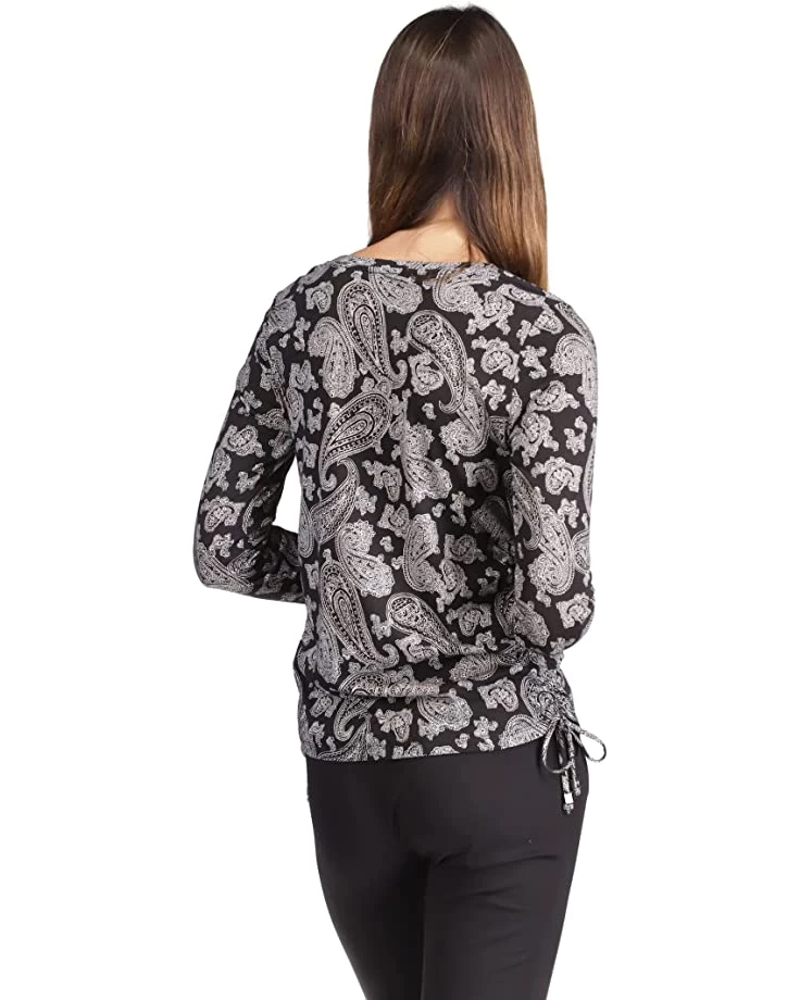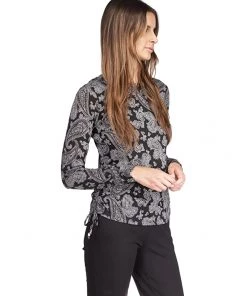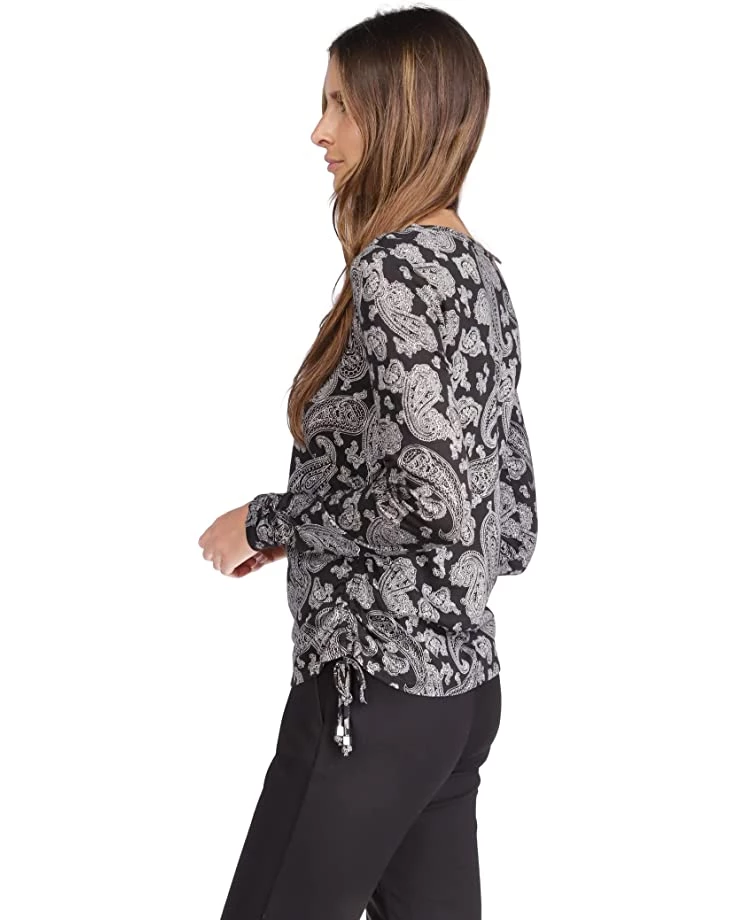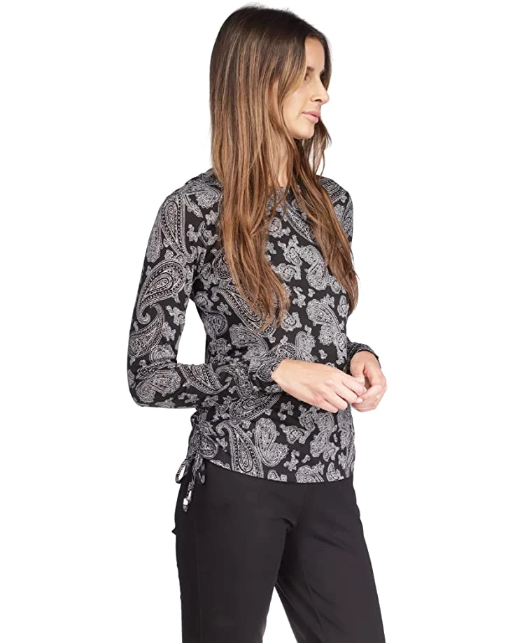 - The MICHAEL Michael Kors® Print Ruched Long Sleeve Tee feels comfy and looks chic. It feels ruched side with tie-up detail.