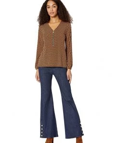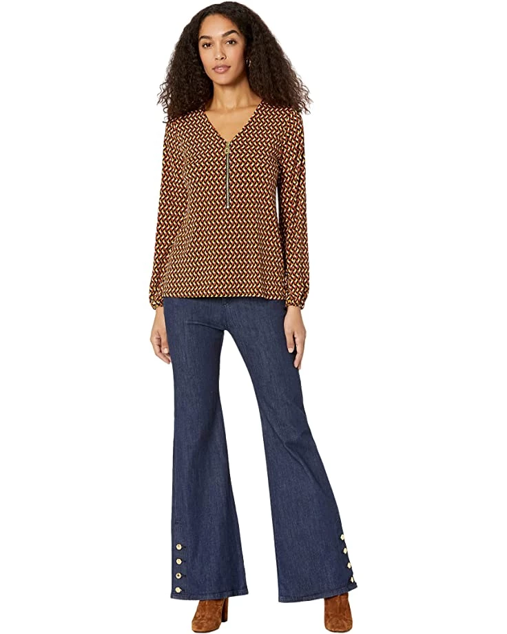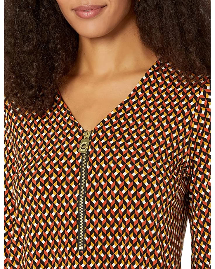 - Feel the flare of a fashion-forward look by wearing MICHAEL Michael Kors® Printed Long Sleeve Dog Tag Top.