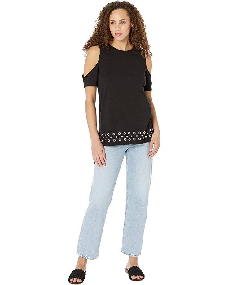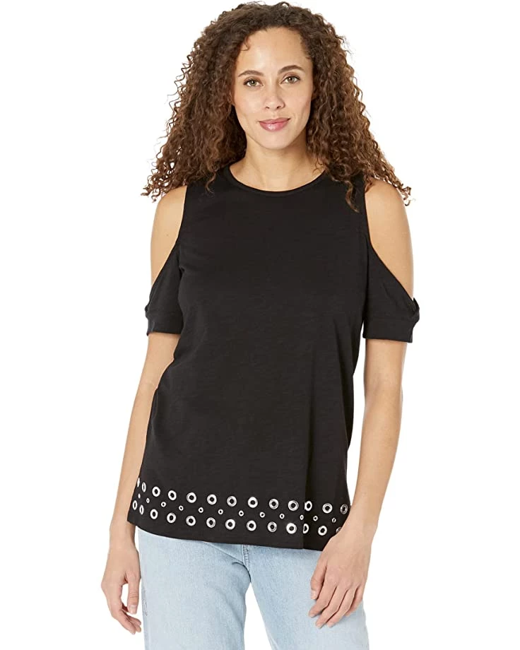 - Let the heads turn and when you walk in wearing MICHAEL Michael Kors® Short Sleeve Grommet Mix Tunic.