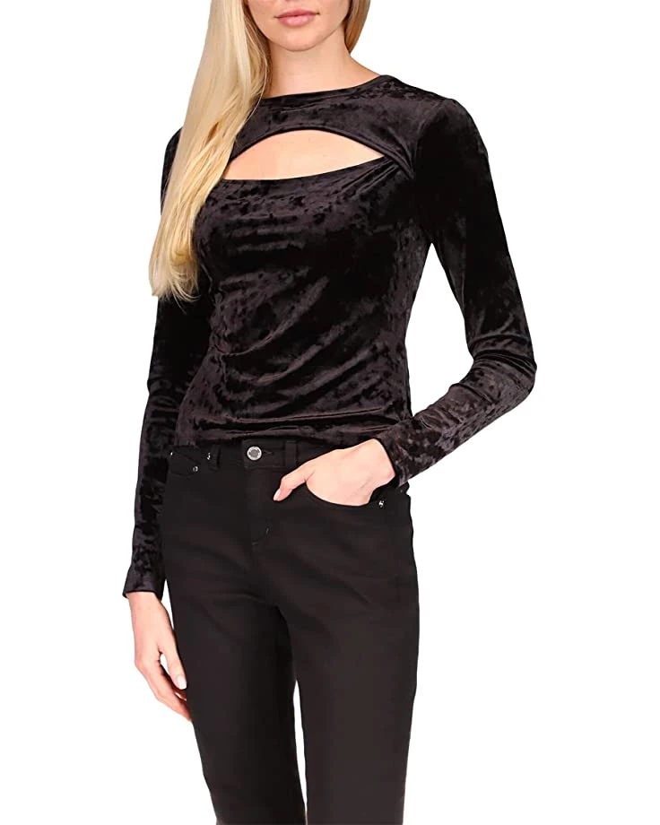 - Give a stylish twist to your look with this MICHAEL Michael Kors® Velvet Cutout Long Sleeve Top.