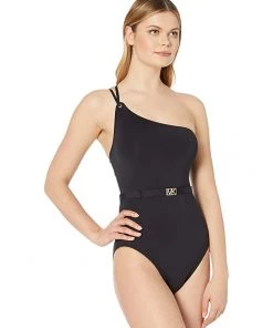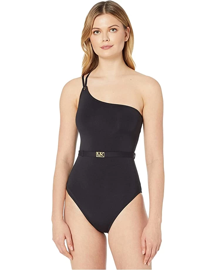 - All you need now are dark sunglasses and a hat and you’re ready to dominate any beach in this MICHAEL Michael Kors® Logo Solids One Shoulder One-Piece.