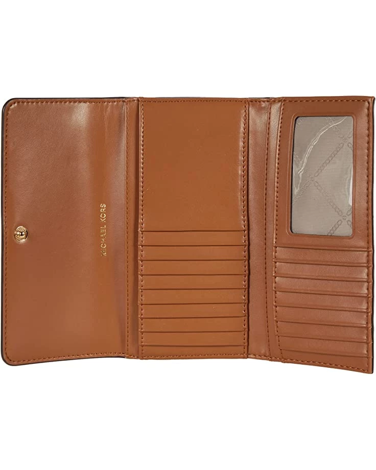 - Set off in luxury with the MICHAEL Michael Korsยฎ Jet Set Charm Large Trifold Wallet featuring an external zip pocket, brand logo emblem and logo embossed body.